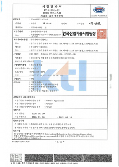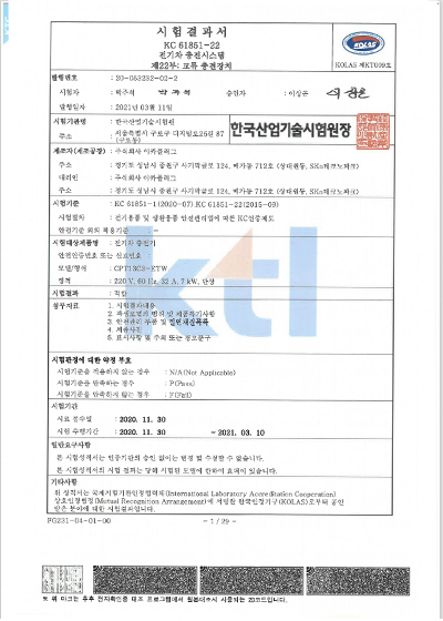 시험성적서 완속 7kw CPT11C