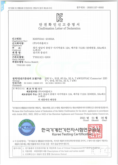 KC안전인증서 완속 7kw CPT11C