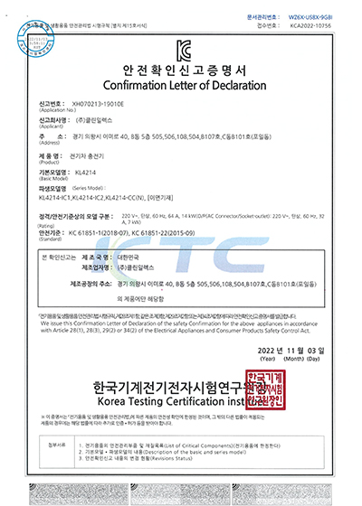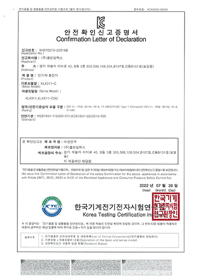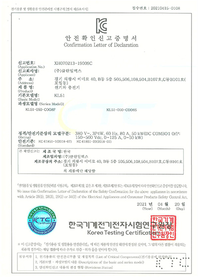 KC안전확인신고증명서 클린급속충전기 50KW