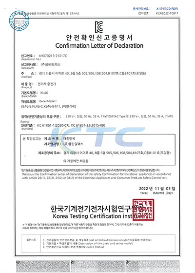 KC안전확인신고증명서 KL46-C