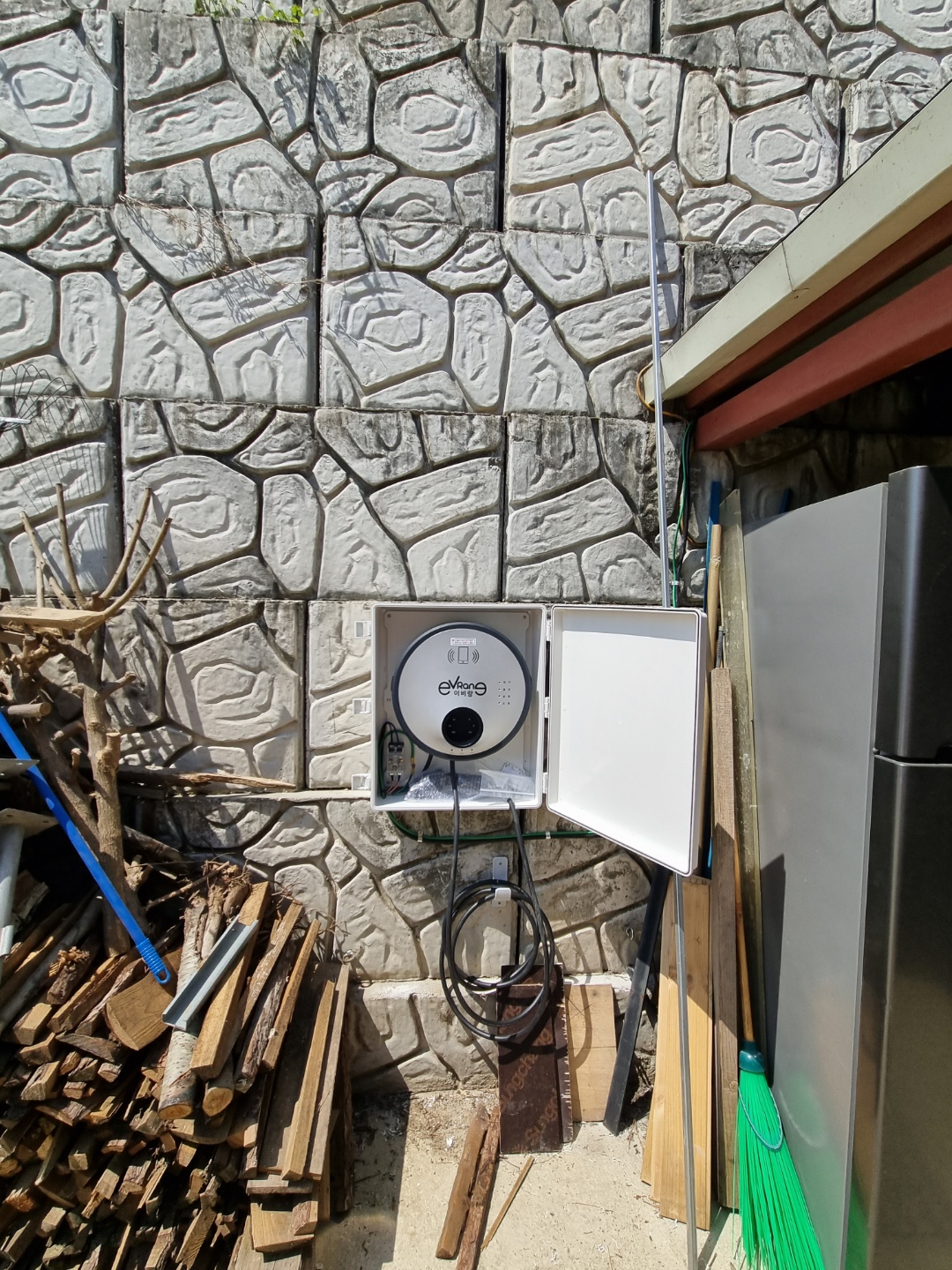 충남 논산 연산면의 개인용주택에 설치한 모습(비공용, 7KW완속, 이카플러그)